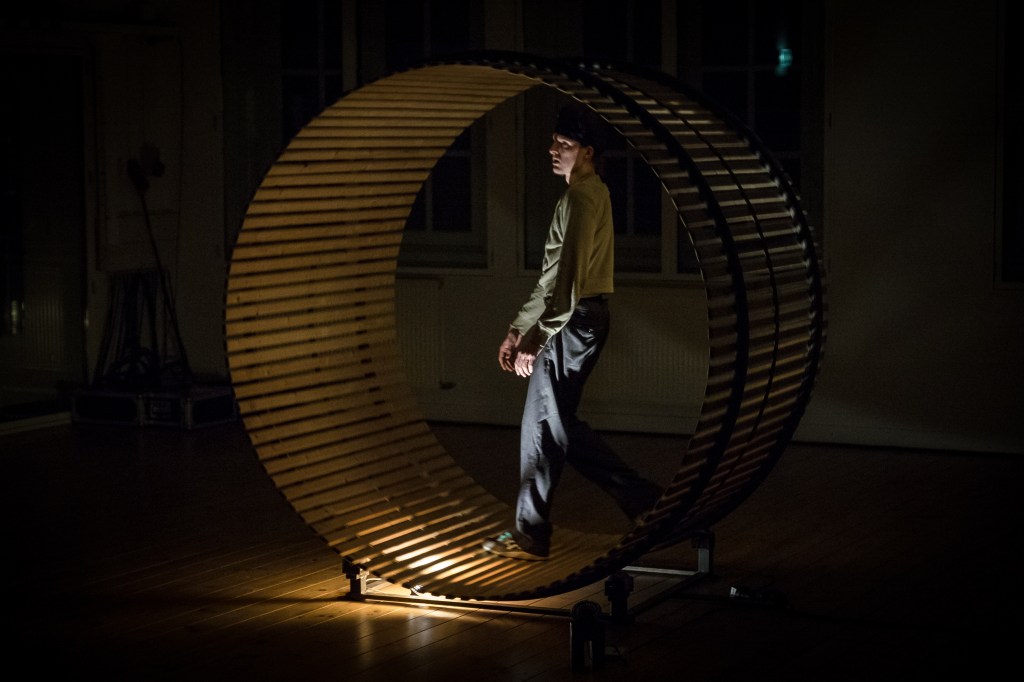 Every step generates another step. The force that is put into the wheel is given back, due to it’s weight. This creates the conditions for a perpetual stumble.